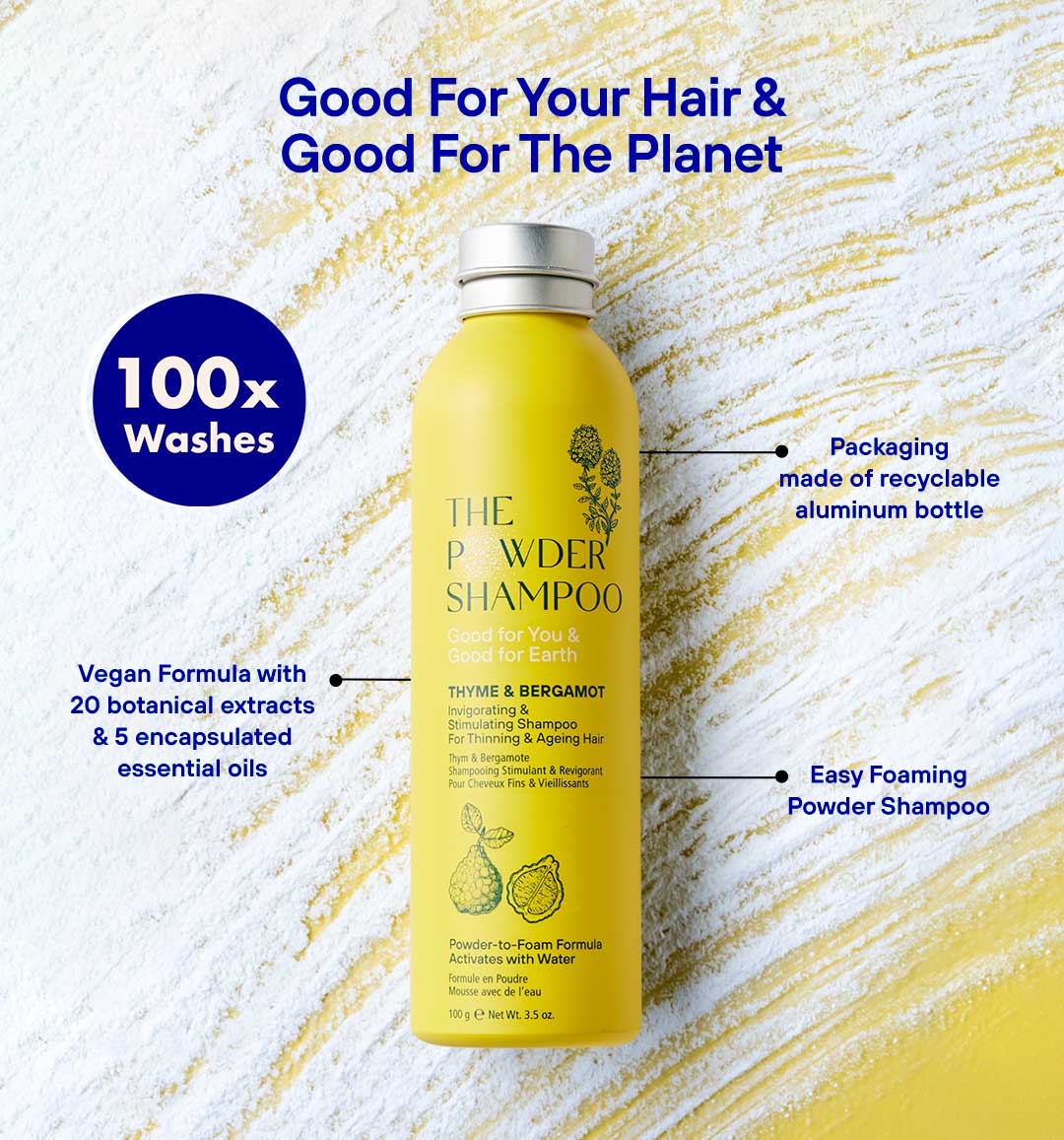 • Easy foaming powder shampoo